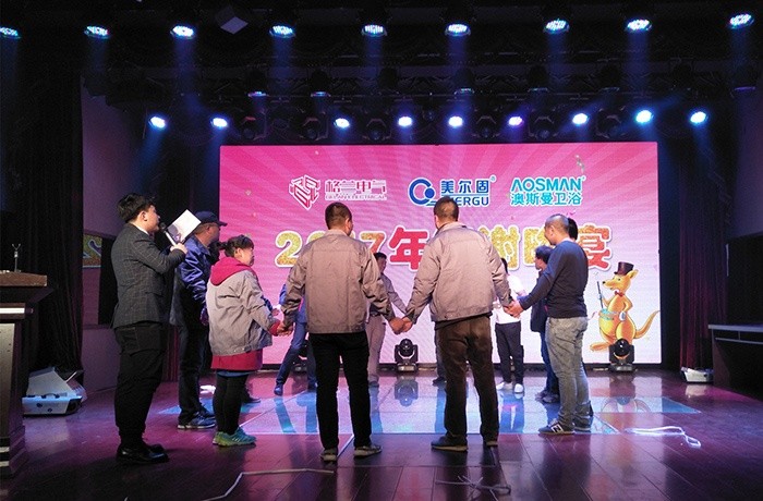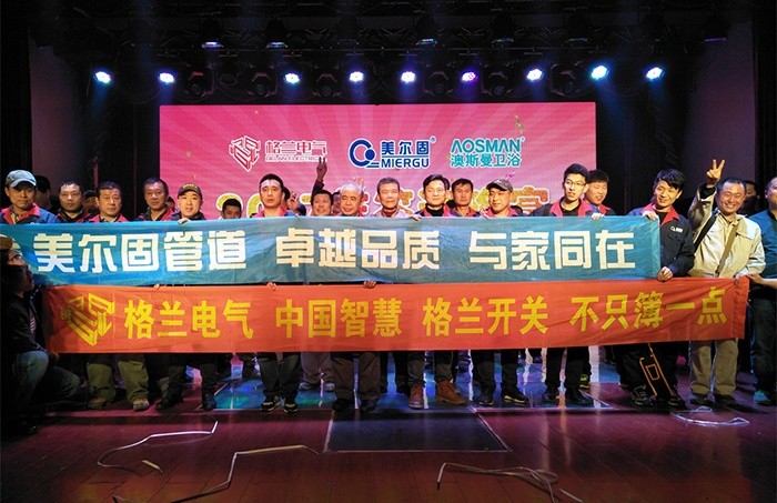 此次格蘭電氣攜手美爾固管道、澳斯曼衛浴等品牌整合行業資源,在發揮行業群體優勢的同時,促進行業成員之間的信息溝通交流與合作,從而更有效地進行市場資源的共享,信息的互通,財富的共贏,也能為市場創造良好的市場環境。在璀璨的燈光秀下,在激情澎湃的開場音樂聲中,鞍山答謝會正式開始。