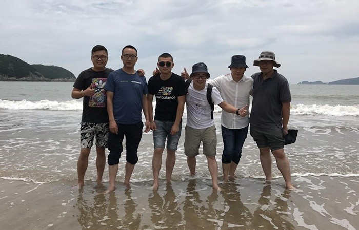 整個行程中,歡聲笑語,格蘭電氣團隊始終被一種和諧、溫馨的氛圍所包圍。歷經3個半小時的車程,終于抵達了目的地——象山。放眼望去,無邊的海水天相接,連綿的山拔地而起,向我們展示出大自然賜予的一切美好。不由地想起我們的抗元民族英雄文天祥的《過亂礁洋》:“海山仙子國,邂逅寄孤篷。萬象畫圖里,千崖玉界中。風搖春浪軟,礁激暮潮雄。云氣東南密,龍騰上碧空。”在這遼闊的海邊,留下了格蘭電氣的第一張集體合影。